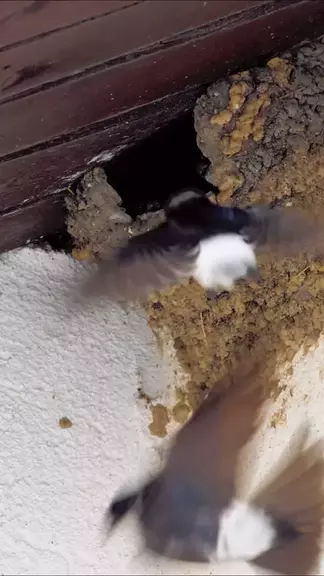 Warmth whispers through the air as swallows stitch spring's cradle. Swallow parents shuttle between the blue sky and the nest, , delivering the freshest "takeout" to the little swallows every day. #swallow #bird