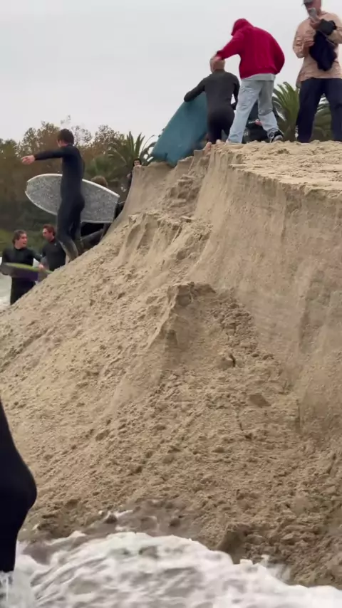 A River begins to breach a steep sand berm and the flowing water carves a trench on the beach. A very rare occurrence to witness! It is very easy to underestimate the power of flowing water. Many of the people riding these river waves are very experienced and know how to exit the river safely. We shovel it to help the process go quicker!#riverwave#river#dam#satisfying#satisfyingvideo#oddlysatisfying#weird#actionsports
