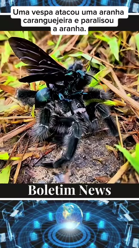 Vespa paraliza um aranha 🕷 caranguejeira. fatos reais. #noticias #vira #viraliza