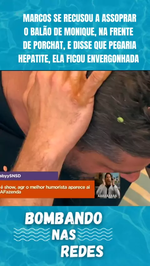 MARCOS SE RECUSOU A ASSOPRAR O BALÃO DE MONIQUE NA FRENTE DE PORCHAT, E DISSE QUE PEGARIA HEPATITE, ELA FICOU ENVERGONHADA #fogonofeno #Treta #afazendarecord #realityshow #afazenda