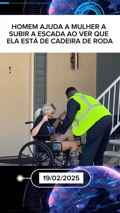 HOMEM AJUDA A MULHER A SUBIR A ESCADA AO VER QUE ELA ESTÁ DE CADEIRA DE RODA #Notícia #entretenimento #ultimasnoticias #New #Ajuda