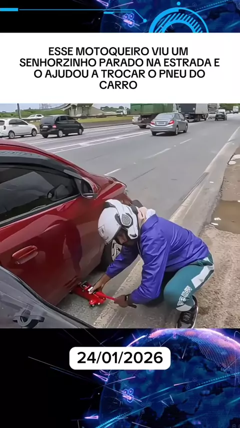 ESSE MOTOQUEIRO VIU UM SENHORZINHO PARADO NA ESTRADA E O AJUDOU A TROCAR O PNEU DO CARRO #Notícias #entretenimento #ultimasnoticias #News #estradas