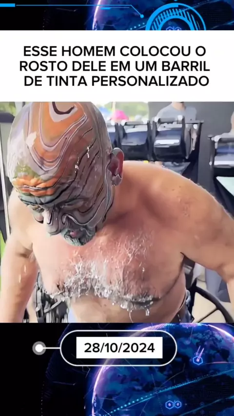 ESSE HOMEM COLOCOU O ROSTO DELE EM UM BARRIL DE TINTA PERSONALIZADO #Notícia #entretenimento #ultimanoticia #New #tinta