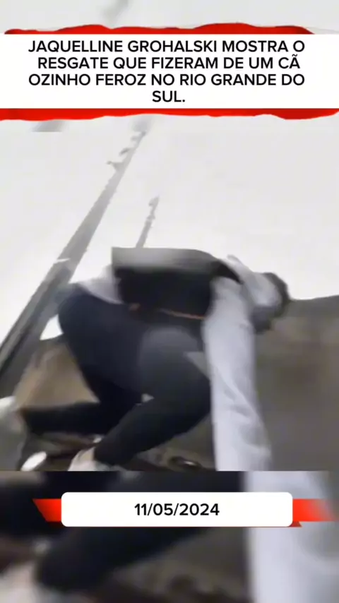 Jaquelline Grohalski mostra o resgate que fizeram de um cãozinho feroz no Rio Grande do Sul. #5mi #sosriograndedosul #forçariograndedosul #riograndedosul #resgate