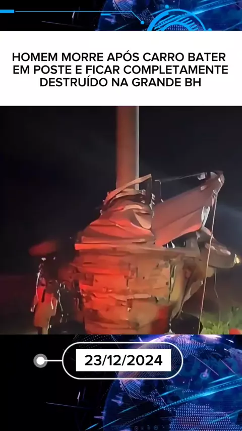 HOMEM MORRE APÓS CARRO BATER EM POSTE E FICAR COMPLETAMENTE DESTRUÍDO NA GRANDE BH #Notícia #entretenimento #ultimasnoticias #News #acidente