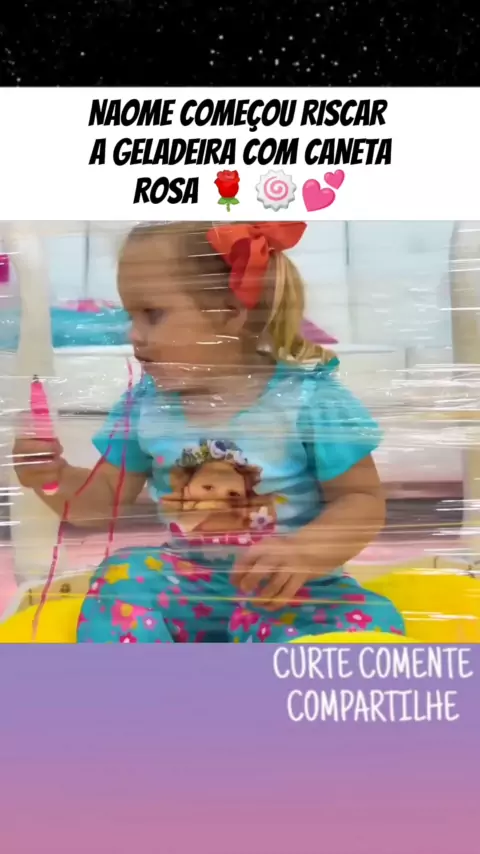 naome começou riscar a geladeira com caneta rosa #crianças #baby #kids #diversao #brincadeiras