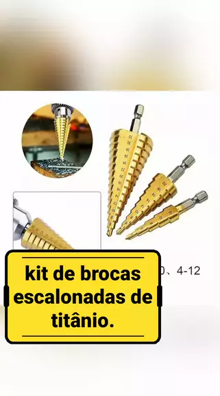 jogo de brocas 3 peças Escalonadas toda em alta Resistência, titânio.