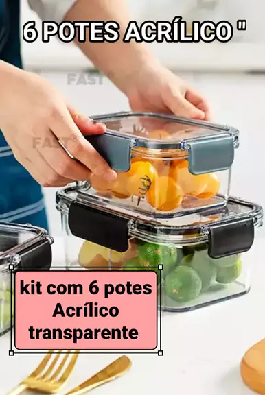 potes Herméticos Acrílico transparente super estiloso pra organizar sua cozinha e geladeira.