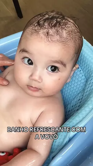 Domingo o batata tomou banho de banheira para refrescar. A vovó ficou muito feliz e dar banho no bebê 🥰 #bebe #maternidade #banhobebe #bebe5meses