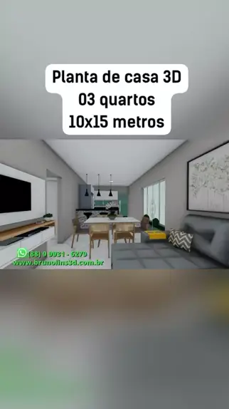 Planta de casa com 03 quartos para terrenos 10x15 metros! #plantadecasa #projetodecasa #casa #casalinda #casadecorada