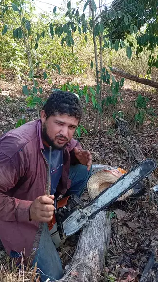 mostrando a forma que eu amolo a corrente da motosserra no trabalho