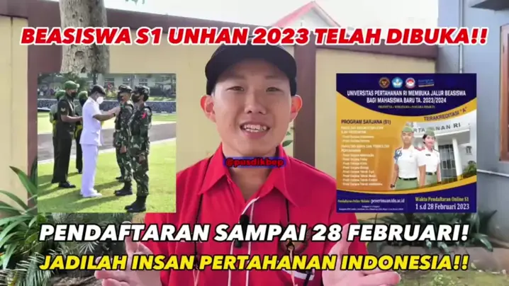 BEASISWA S1 UNHAN 2023 TELAH DIBUKA! JADILAH INSAN PERTAHANAN INDONESIA!! PENDAFTARAN HINGGA 28 FEBRUARI! #MauKerenBEPAja #UniversitasPertahanan #Unhan #Beasiswa #S1 #2023 Jangan lupa like, tinggalkan comment, dan share video ini! Tonton video kami lainnya di www.youtube.com/BUANAELANGPERKASA Follow media sosial kami! www.instagram.com/pusdikbep www.tiktok.com/@pusdikbep www.facebook.com/pusdikbep www.twitter.com/pt_bep https://s.snackvideo.com/u/@pusdikbep