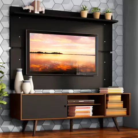 Rack Madesa Cairo e Painel para TV até 65 Polegadas com Pés de Madeira Rustic/Preto 7KD8 De R$ 969,90 por R$ 579,90 no cartão em até 7x de R$82,84 sem