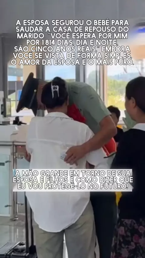 A esposa segurou o bebê para saudar a casa de repouso do marido. Embora ela se vestisse de forma simples, seu amor era muito puro.