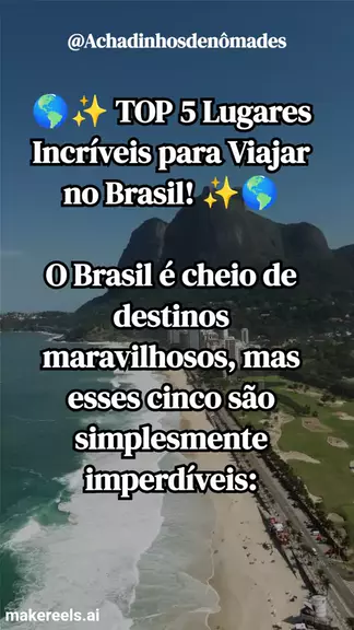 🌎✨ TOP 5 Lugares Incríveis para Viajar no Brasil! ✨🌎 O Brasil é cheio de destinos maravilhosos, mas esses cinco são simplesmente imperdíveis: 💬 Você concorda com essa lista? Comente qual desses lugares você acha mais bonito ou indique outro destino incrível no Brasil! 🇧🇷✨ #ViagemPeloBrasil #Top5Destinos #BrasilLindo #Natureza #turismo