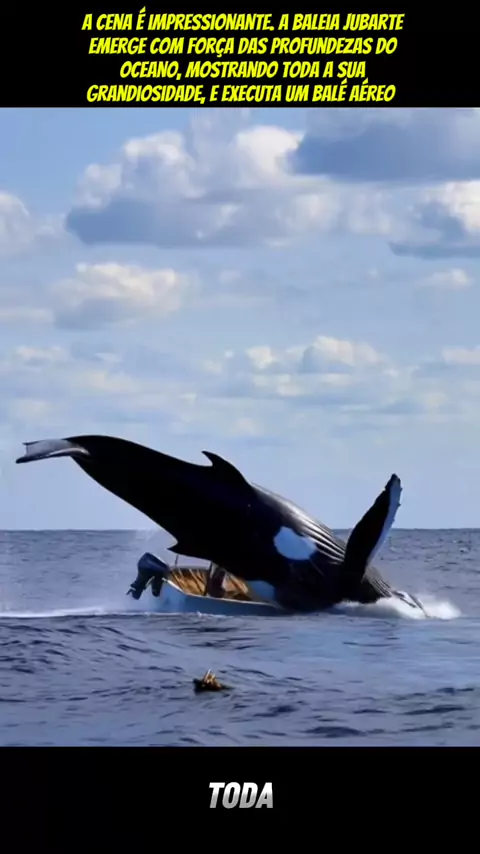 Assista até o final, a cena é impressionante. A baleia jubarte emerge com força das profundezas do oceano, mostrando toda a sua grandiosidade, e executa um balé aéreo poderoso. No movimento, ela atinge uma embarcação em cheio, lançando as pessoas à deriva, no meio do mar revolto. O choque é brutal, as ondas se formam e a adrenalina toma conta de todos. É um espetáculo da natureza e da força dos gigantes do oceano, que nos lembra o quão pequenos somos #educação #foryou #ia #viraliza #vidaanimal