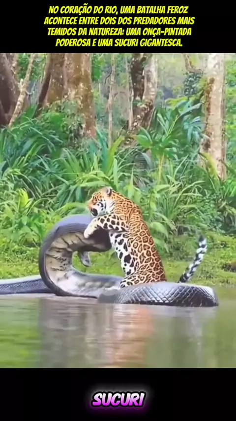 No coração do Rio, uma batalha feroz acontece entre dois dos predadores mais temidos da natureza: uma onça-pintada poderosa e uma sucuri #viraliza #foryou #ia #vidaanimal