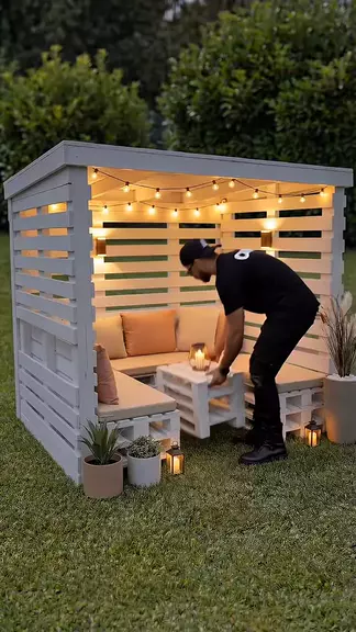 I Turned Old Pallets into the ULTIMATE Backyard Oasis! 😱✨ Turned basic wooden pallets into the ultimate cozy backyard retreat! 🛠️✨ A little white paint, some comfy cushions, and warm string lights completely transformed this space. #DIYProject #PalletFurniture #BackyardMakeover #Upcycling #OutdoorLiving More
