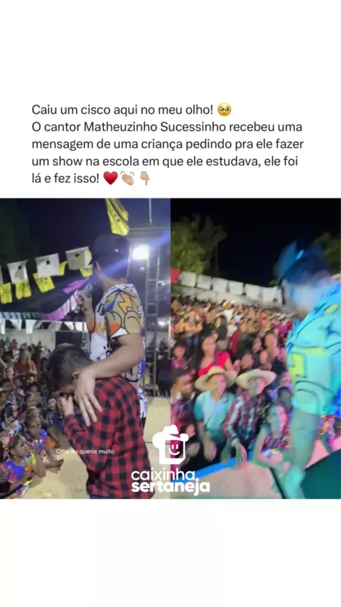 Sera que foi inesquecível pra essas crianças! Você é incrível @matheuzinhosucessinho ♥️👏🏼 🤠 Siga @caixinhasertaneja #matheuzinhosucessinho