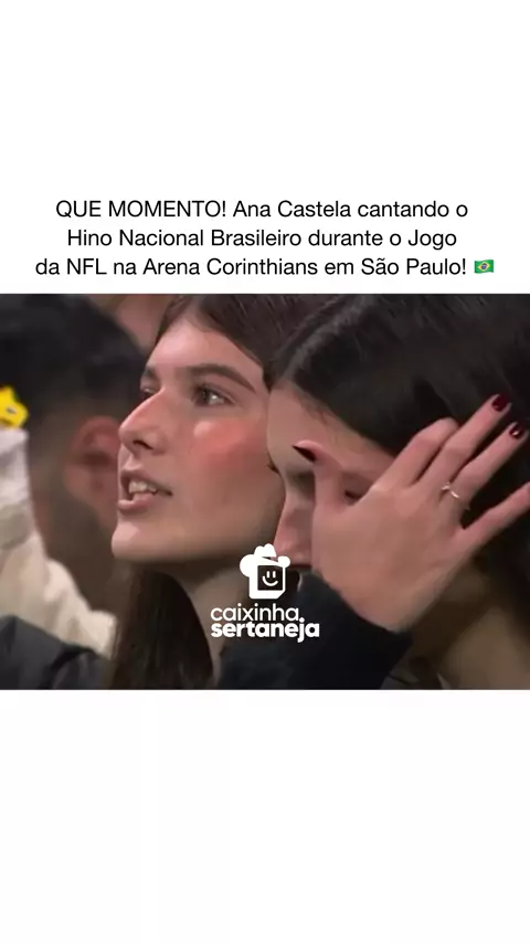 Ela fez história! O Brasil rendeu elogios com a performance de @anacastelacantora cantando o Hino Nacional Brasileiro durante o Jogo da NFL na Arena Corinthians! 🇧🇷🤠 🤠 Siga @caixinhasertaneja
