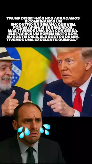 Trump disse: > “Nós nos abraçamos e combinamos um encontro na semana que vem. Foram apenas 20 segundos, mas tivemos uma boa conversa. Ele parece um homem muito bom. Eu gostei dele, ele gostou de mim. Tivemos uma excelente química.” #politica #Notícia #humorpolitico #lula