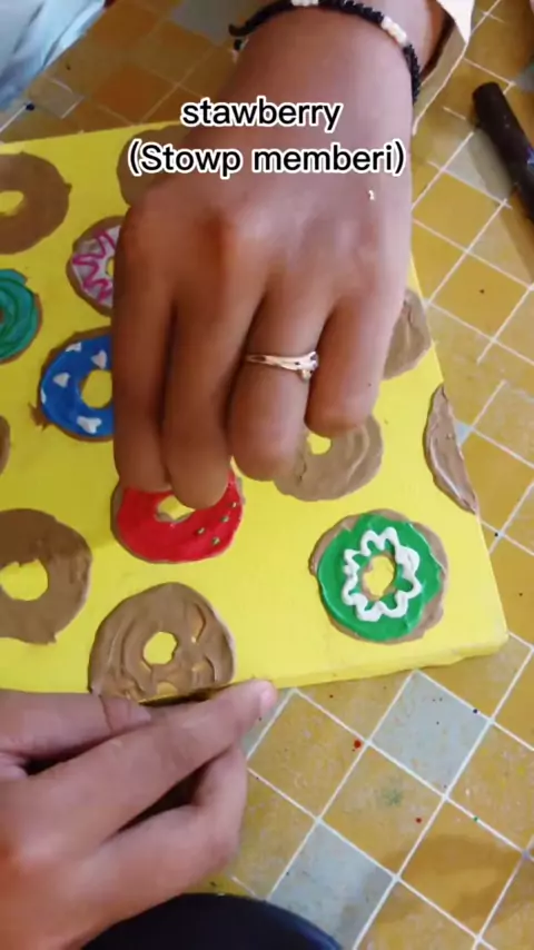 Replying to @Meisya dan Diva rasa yang pernah adah gimana ??#bikinkarya#tutorial#DIY#lukisan#donat#texturedpaint#art#
