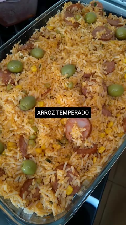 INGREDIENTES: - 5 xícaras de arroz cozido - 1/2 cebola - 2 gomos de calabresa defumada - 1 sachê de molho de tomate - 1/2 sachê de água - 1 lata de milho - 1 lata de ervilha - Orégano a gosto - Cebolinha verde a gosto - 50g de queijo ralado - Azeitonas #receitarápida #receitasimples #receita #almoco