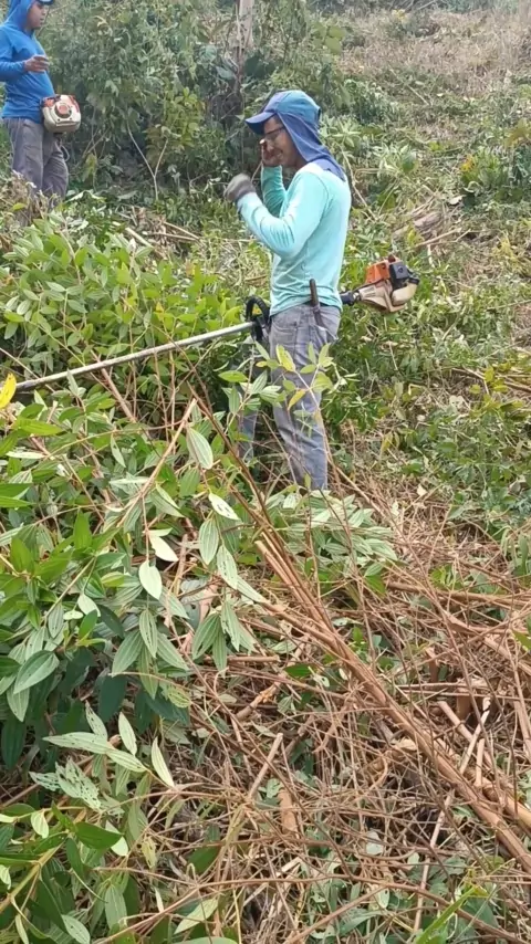 tá vazando o facão para trabalhar de roçadeira