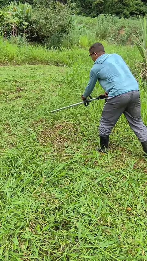 trabalhando no sítio cortando braquiária do brejo