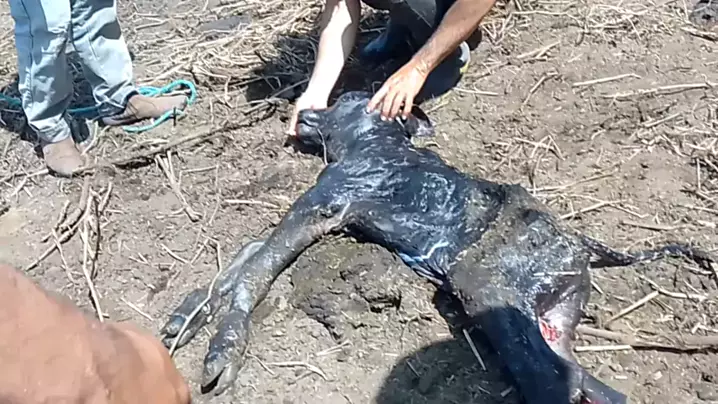 a vaca não conseguiu fazer o parto. único jeito de salva ela foi puxando o bezerro com a ajuda de um cavalo 🙏😰