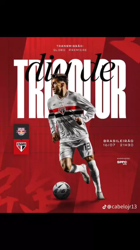 É #DiaDeTricolor em Bragança Paulista! 🔜 Hoje tem: Red Bull Bragantino x São Paulo, às 21h30, no Estádio Cícero de Souza Marques, pela 14ª rodada do Brasileirão. Transmissão na Globo e no Premiere, e narração na SPFC Play. #VamosSãoPaulo 🇾🇪
