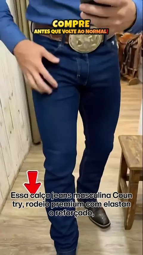 Finalmente uma calça jeans que aguenta o ritmo do seu dia a dia country #JeansCountry #EstiloRodeio #ConfortoResistência #ModaMasculina #CalçaPremium