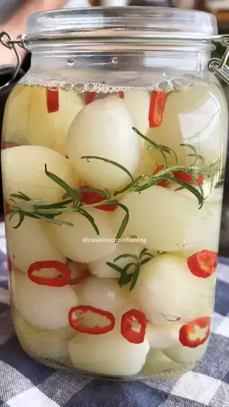 Conserva de Cebolinha šIngredientes: 1kg de cebolinha 1 colher de chĆ” de sal 1,5 litros dāĆ”gua (para cozinhar) 5 dentes de alho descascados 15g de sal 10g de açúcar 1 pimenta dedo de moƧa sem sementes Ramos de alecrim Ć gosto 400ml de vinagre de Ć”lcool 400ml dāĆ”gua do cozimento šModo de preparo no vĆdeo š„ #conservadecebola #receitasfaceis