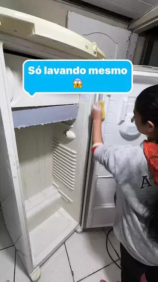 Eu nunca tinha visto uma geladeira tão suja 😱🤭 Foi uma experiência e tanto kkkk Ficou bem limpinha e nem parece a mesma. #geladeira #faxinando💪 #faxinapesada