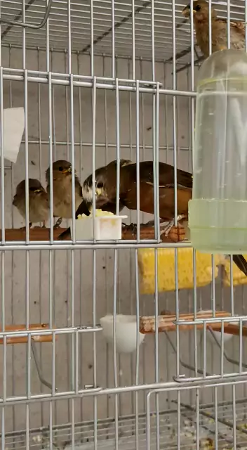 fêmea de bicudo tratando dos filhotes de coleiro filhotes gola e filhotes preto mutação um verdadeiro luxo parabéns ao proprietário Leonildo Maringá Paraná.