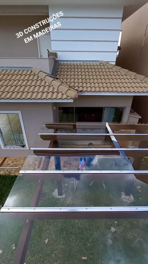 Pergolado com cobertura em vidro 3D CONSTRUÇÕES EM MADEIRAS 42 99943-3507 #pontagrossa #pergolado #vidro #vidraçaria #vidraçaria