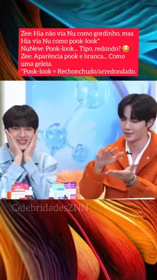 Zee: Hia não via Nu como gordinho, mas Hia via Nu como pook-look* NuNew: Pook-look... Tipo, redondo? 😂 Zee: Aparência pook e branca... Como uma geleia. *Pook-look = Rechonchudo/arredondado. #zeenunew #boyslove #entretenimento #topz #LetsRök