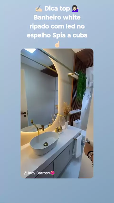 βπ» Dica top ππ»ββοΈ Banheiro white ripado com led no espelho Spia a cubaβπ» #kwai rumo aos 10k e o fixo pra fazer minha casa π‘ e postar cada etapa π me ajuda Kwai ππ»