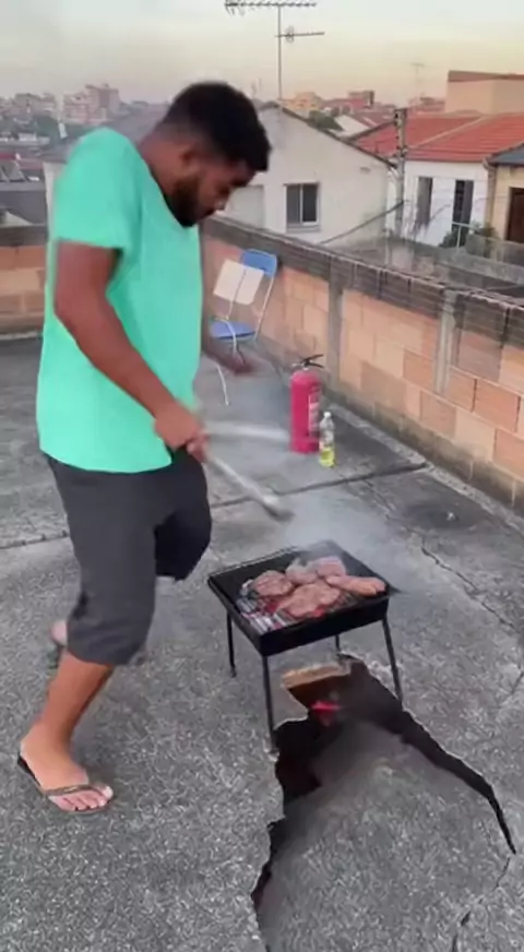 A churrasqueira começou a afundar do nada #inesperado #real #ia s