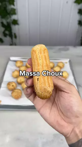Massa Choux 😍 Ingredientes: Craquelin: 100 g manteiga 125 g farinha de trigo 125 g açúcar demerara Massa Choux: 125 g leite integral 125 g água Uma pitada de sal 110 g manteiga sem sal 150 g farinha de trigo 4 unidades ovos