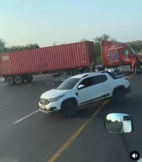 CRISE NO MÉXICO #Bloqueios #CodeRed | Momento em que seis pessoas incendiaram um trailer e sua carga na rodovia Guadalajara-Colima, perto de Cuatro Caminos, Ciudad Guzmán, Jalisco.