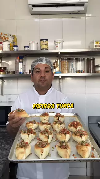 Esfirra Turca de Carne com Vinagrete Em uma vasilha, 1kg farinha, 80g açúcar, 20g sal, 80ml óleo, 1 ovo, 40g fermento fresco, 600ml água e misture bem Corte a massa em tiras, tire pedaços de 50g e vai boleando Deixe a massa descansar por 30 minutos Abre a massa no rolo, recheie com carne e feche a esfirra como mostrado no vídeo Forno 250 graus por 5 minutos Finalize com vinagrete por cima #esfirra #esfiha #Receita