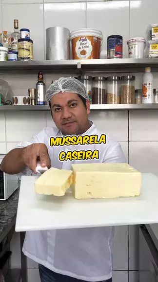 Mussarela Caseira Em um liquidificador, coloque 1L leite, 200g amido de milho e bata para misturar os ingredientes Despeje sua mistura em uma panela e mexa até ferver Acrescente 20g sal, 200g manteiga e mexe bem Em seguida, coloque 200g mussarela e misture pela última vez Transfira o queijo para uma forma e leve para gelar por 3 horas Desenforme o queijo #queijo #mussarela #Receita