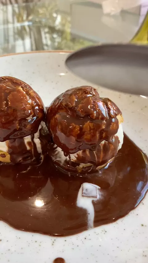 Profiteroles com sorvete e calda de chocolate β€οΈπ©πΌβπ³π #ArteDeSatisfazer #naoparanao #minharotina #tootima #boavibe #nossaquarentena #Tedioemcasa #receitaboa
