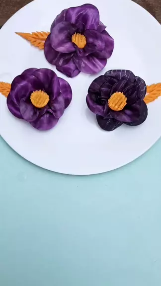 Flor fácil de fazer, com repolho roxo e cenoura💜🧡 #flores #saladas #foodart #legumes Feito pela Chef Marta Thompson @Kwai Brasil Oficial(O558843093) @g1(O150001104741893) @Metrópoles Oficial(O150000983210156)