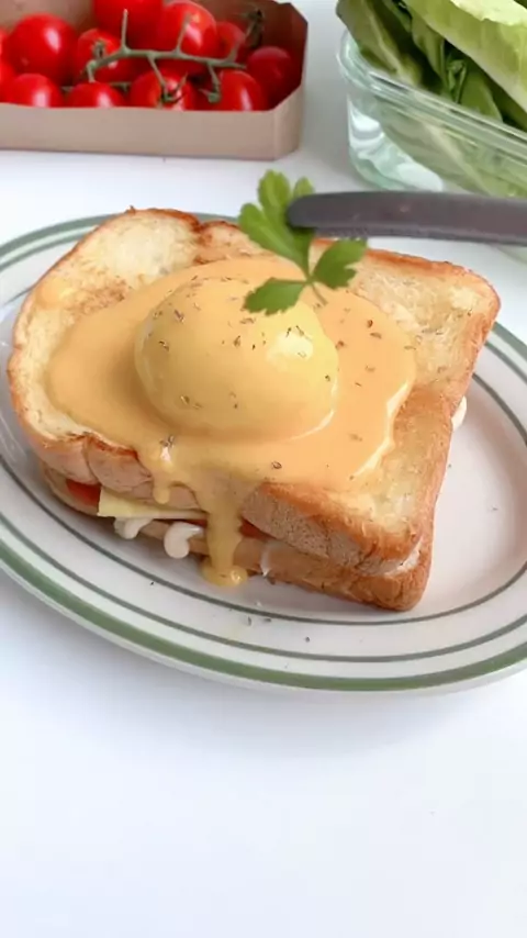 Eggs Benedict Ham and Cheese πŸ₯šπŸ§€ #doyanjajan #korea #food #makanan #fyp More