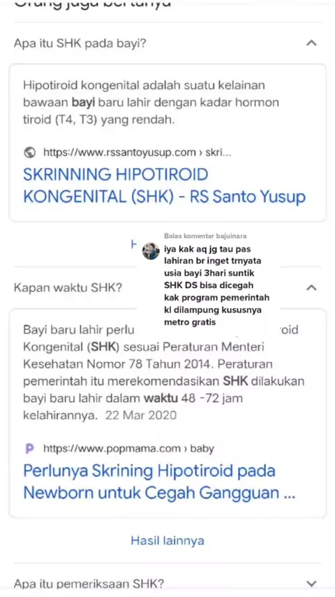 Balas @bajuinara itu chek hipo Bun, bukan cegah DS, saling belajar y 🤗 memang chek yg wajib Stlh anak lahir yaitu cek kromosom, cek hypo dan jantung