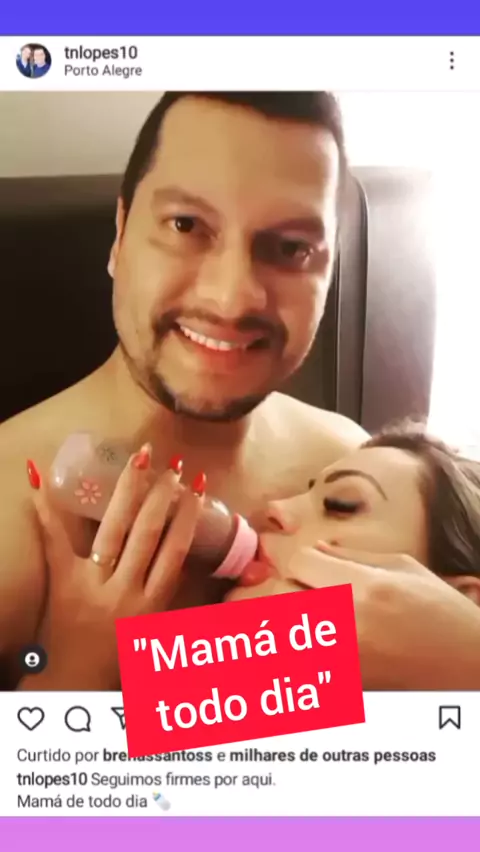 Andressa Urach surge novamente tomando mamadeira no colo do marido. #famosos #soucriador