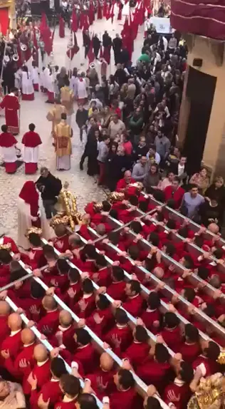 Procissão em Málaga, Espanha, com o maior andor do mundo representando a Santa Ceia em tamanho real.