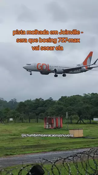 Boeing 737-max chegando de congonhas na grande são paulo em Joinville com chuva e pista molhada chuva e aviação sempre com emoção #Joinville #737max #gol #pouso #emoção